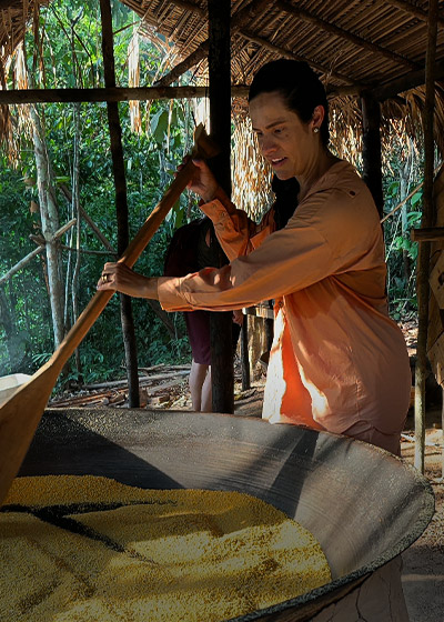 Uma tarde cultural especial visitando a autêntica “Casa do Caboclo”. Guiados pela luz suave do entardecer, os participantes aprenderão com um caboclo sobre plantas medicinais e assistirão ao processo de produção da farinha de mandioca, principal atividade econômica local. A experiência inclui uma interação amigável, degustação de produtos locais e uma imersão autêntica na cultura cabocla.