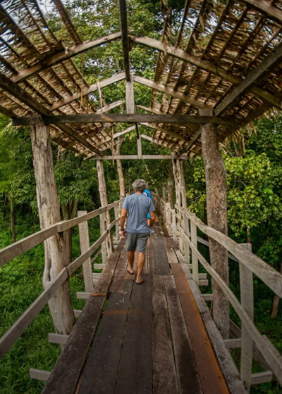 São 3km de descobertas para uma incrível caminhada em meio a maior floresta tropical do mundo. Nossos guias são muito experientes e explicam sobre a rica biodiversidade da Amazônia. Você vai aprender sobre diversas plantas nativas, algumas próprias para uso medicinal ou cosmético, poderá conhecer um pouco sobre sobrevivência na selva através das nossas oficinas explicativas.