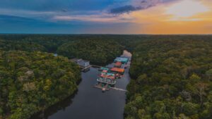 Desperte seus sentidos com o nascer do sol na Amazônia, um momento mágico de renovação e conexão com a natureza. Adaptamos a atividade conforme a estação, usando canoas motorizadas para explorar o deslumbrante nascer do sol refletido nas águas do Rio Negro durante as cheias dos rios. Na temporada de seca, desfrute de uma caminhada na praia, com a opção de explorar o Rio Negro e observar pássaros locais. Esta experiência única oferece renovação de energia e a oportunidade de apreciar a vida selvagem amazônica.