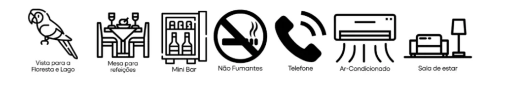 Furthermore, the suite has a private veranda that guarantees a privileged view of the entire forest, the lake, and the pool, making the experience unforgettable.